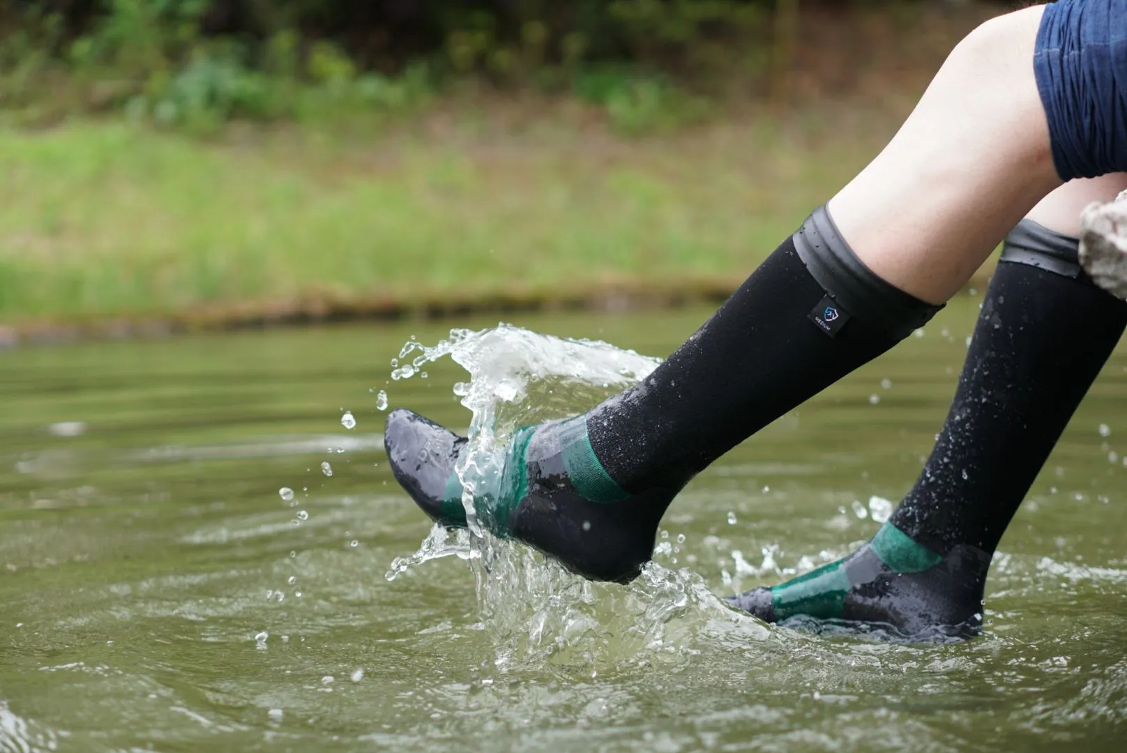 Мембрана в носках DexShell блокирует влагу, но в большинстве моделей вода все равно может попасть внутрь, если перельется через край носка. В носках Wading Pro эта проблема решена: у них есть специальный герметичный манжет Dexlok, который не пропускает воду внутрь даже если зайти в воду по колено. Это полезно для рыбаков и любителей прогулок на каяках или байдарках.