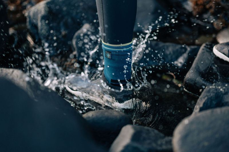 Не боятся воды. Носки делают по трехслойной технологии. В среднем слое расположена мембрана Porelle®, которая не дает воде попасть внутрь. Ноги не промокнут, даже если вы совершаете пробежку в дождь, идете по мокрой траве в походе или заходите в холодную воду на рыбалке. Это не просто удобно — это спасает от дискомфорта и простуды.